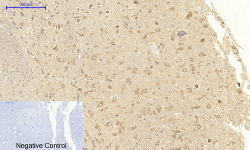 Immunohistochemistry analysis of paraffin-embedded rat spinalcord using Flk1 antibody.High-pressure and temperature Sodium Citrate pH 6.0 was used for antigen retrieval. Sample with blocking peptide on the right. |