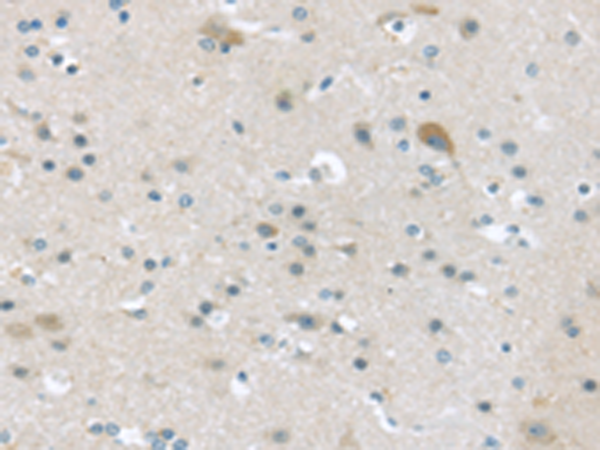 The image is immunohistochemistry of paraffin-embedded Human brain tissue using P05505(VGF Antibody) at dilution 1/45. (Original magnification: ×200) |