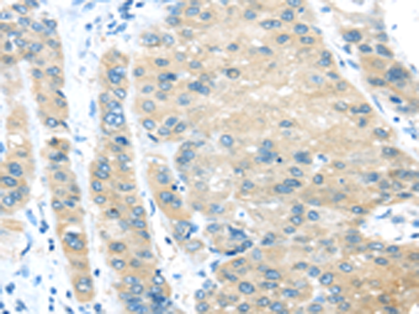 The image is immunohistochemistry of paraffin-embedded Human liver cancer tissue using P12386(VPS4A Antibody) at dilution 1/25. (Original magnification: ×200) |