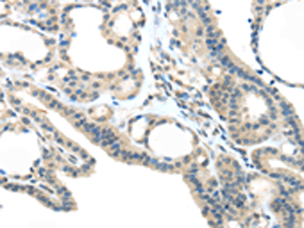 The image is immunohistochemistry of paraffin-embedded Human thyroid cancer tissue using P05509(VSIG10 Antibody) at dilution 1/45. (Original magnification: ×200) |