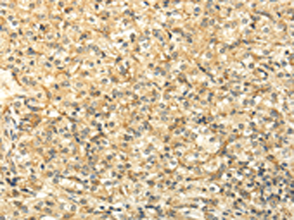 The image is immunohistochemistry of paraffin-embedded Human liver cancer tissue using P12394(WDR91 Antibody) at dilution 1/35. (Original magnification: ×200) |