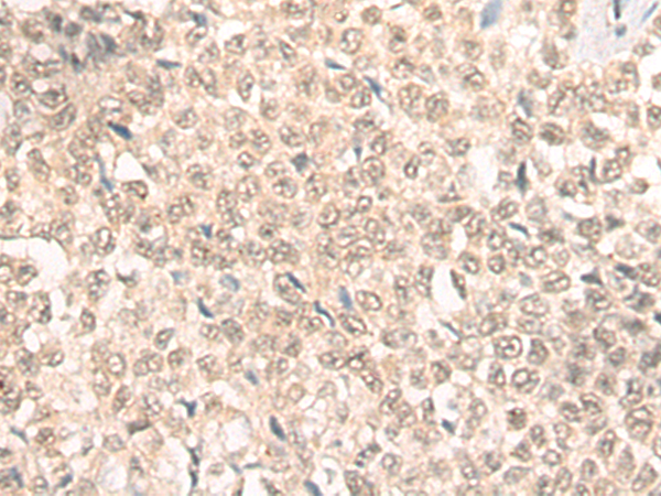 The image is immunohistochemistry of paraffin-embedded Human ovarian cancer tissue using P05521(WEE1 Antibody) at dilution 1/20. (Original magnification: ×200) |