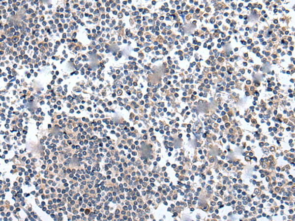 The image is immunohistochemistry of paraffin-embedded Human tonsil tissue using P12890(WNT5A Antibody) at dilution 1/25. (Original magnification: ×200) |