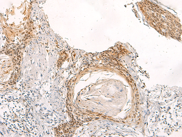 The image is immunohistochemistry of paraffin-embedded Human esophagus cancer tissue using P12435(XPC Antibody) at dilution 1/20. (Original magnification: ×200) |
