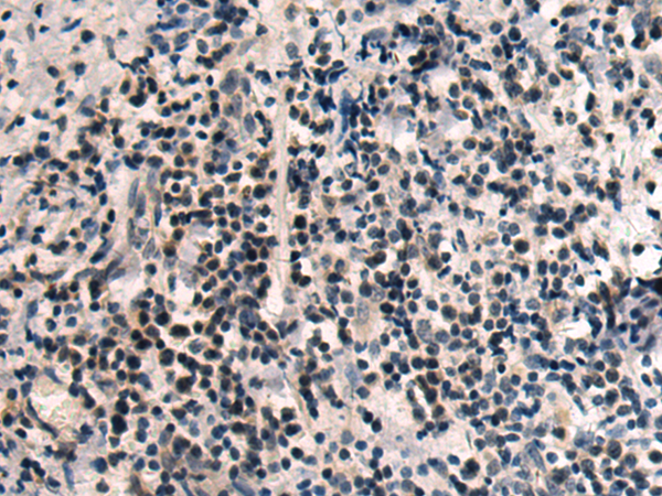The image is immunohistochemistry of paraffin-embedded Human tonsil tissue using P06872(XRCC1 Antibody) at dilution 1/50. (Original magnification: ×200) |