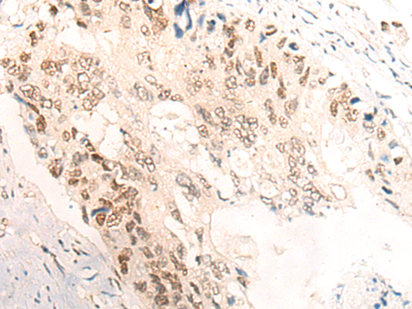 The image is immunohistochemistry of paraffin-embedded Human ovarian cancer tissue using P12436(YAP1 Antibody) at dilution 1/20. (Original magnification: ×200) |