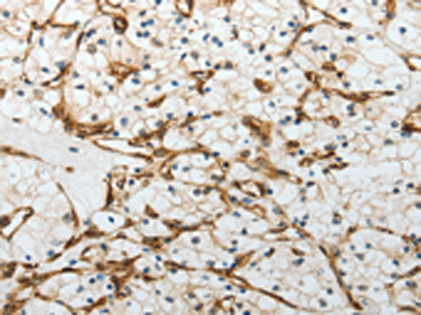 The image is immunohistochemistry of paraffin-embedded Human renal cancer tissue using P04236(YBX1 Antibody) at dilution 1/15. (Original magnification: ×200) |