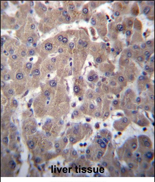 YIPF1 Antibody (N-term) (Cat. #P31180)immunohistochemistry analysis in formalin fixed and paraffin embedded human liver tissue followed by peroxidase conjugation of the secondary antibody and DAB staining.This data demonstrates the use of YIPF1 Antibody (N-term) for immunohistochemistry. Clinical relevance has not been evaluated. |
