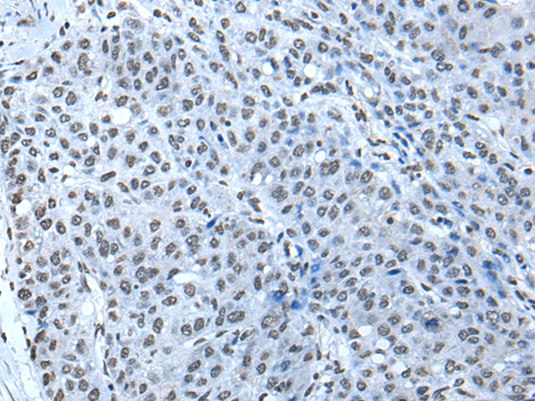 The image is immunohistochemistry of paraffin-embedded Human liver cancer tissue using P12834(ZBTB4 Antibody) at dilution 1/20. (Original magnification: ×200) |