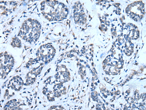 The image is immunohistochemistry of paraffin-embedded Human esophagus cancer tissue using P05956(ZBTB40 Antibody) at dilution 1/20. (Original magnification: ×200) |