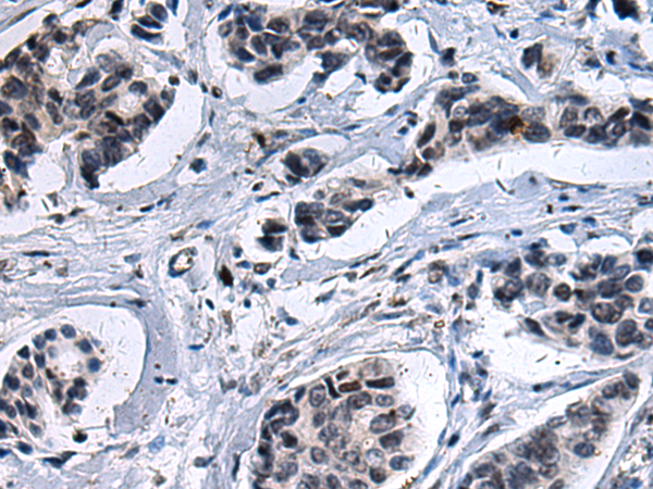 The image is immunohistochemistry of paraffin-embedded Human breast cancer tissue using P12438(ZFAND2B Antibody) at dilution 1/20. (Original magnification: ×200) |