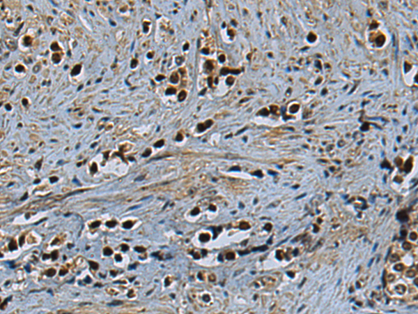 The image is immunohistochemistry of paraffin-embedded Human prostate cancer tissue using P03072(ZNF688 Antibody) at dilution 1/110. (Original magnification: ×200) |